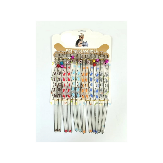 10MM Paw Print Adjustable Pet Collar with Bell – Buckle Collar for Dogs, Puppies, Cats & Kittens (X-Small Size)