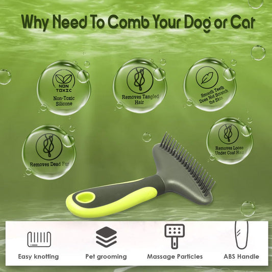 Rake Comb for Dogs & Cats – Stainless Steel Grooming Tool with Soft Grip Handle