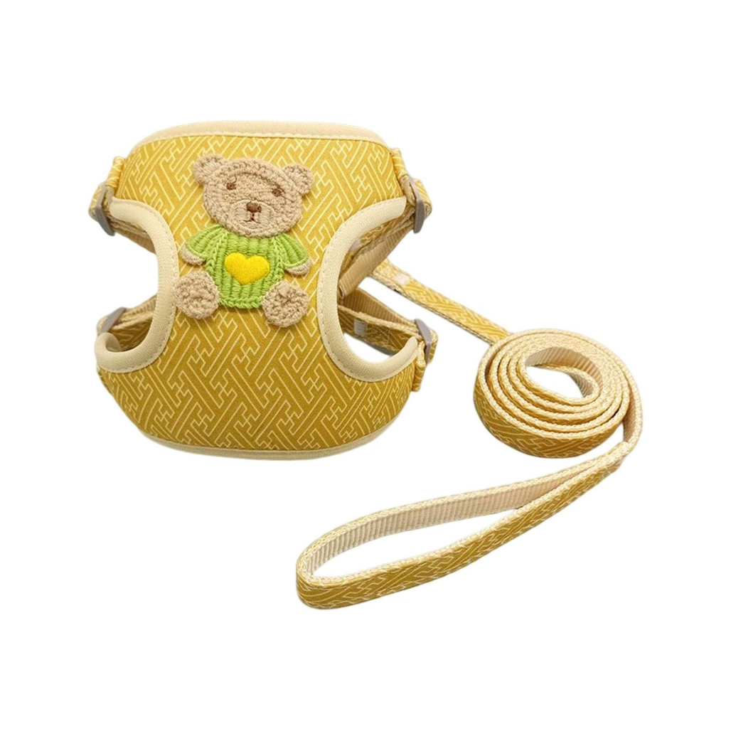 Dog & Cat Harness with Leash – Escape-Proof Vest for Small Pets | Breathable, Adjustable & Cartoon Bear Design (Small)
